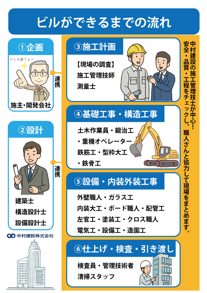 一つのビルを建てるまでにどんな職種のプロがいるか紹介します。