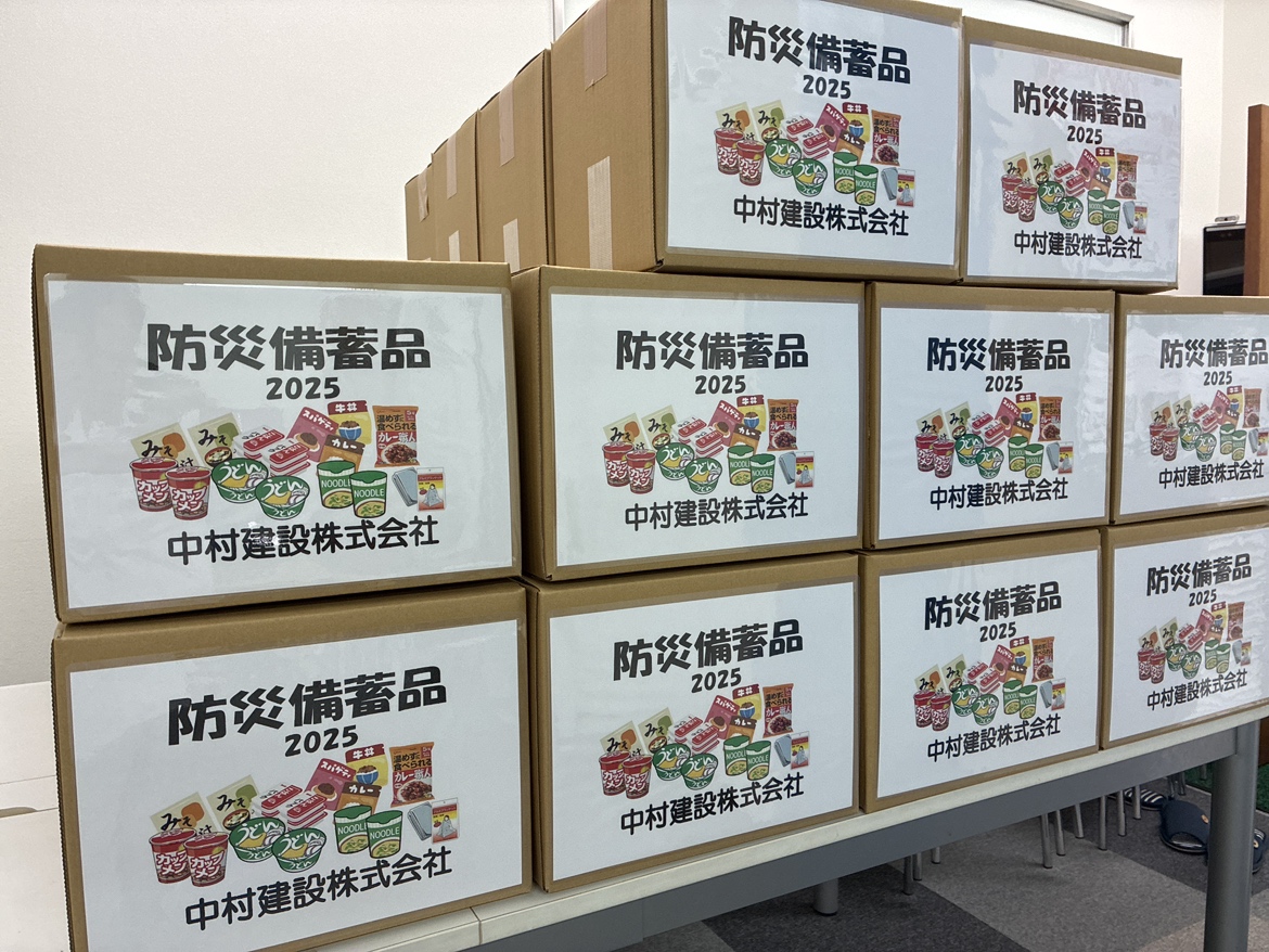 中村建設では、防災備蓄品を福利厚生にする取り組みをたくさんの企業が実践してくれたらと願っています。