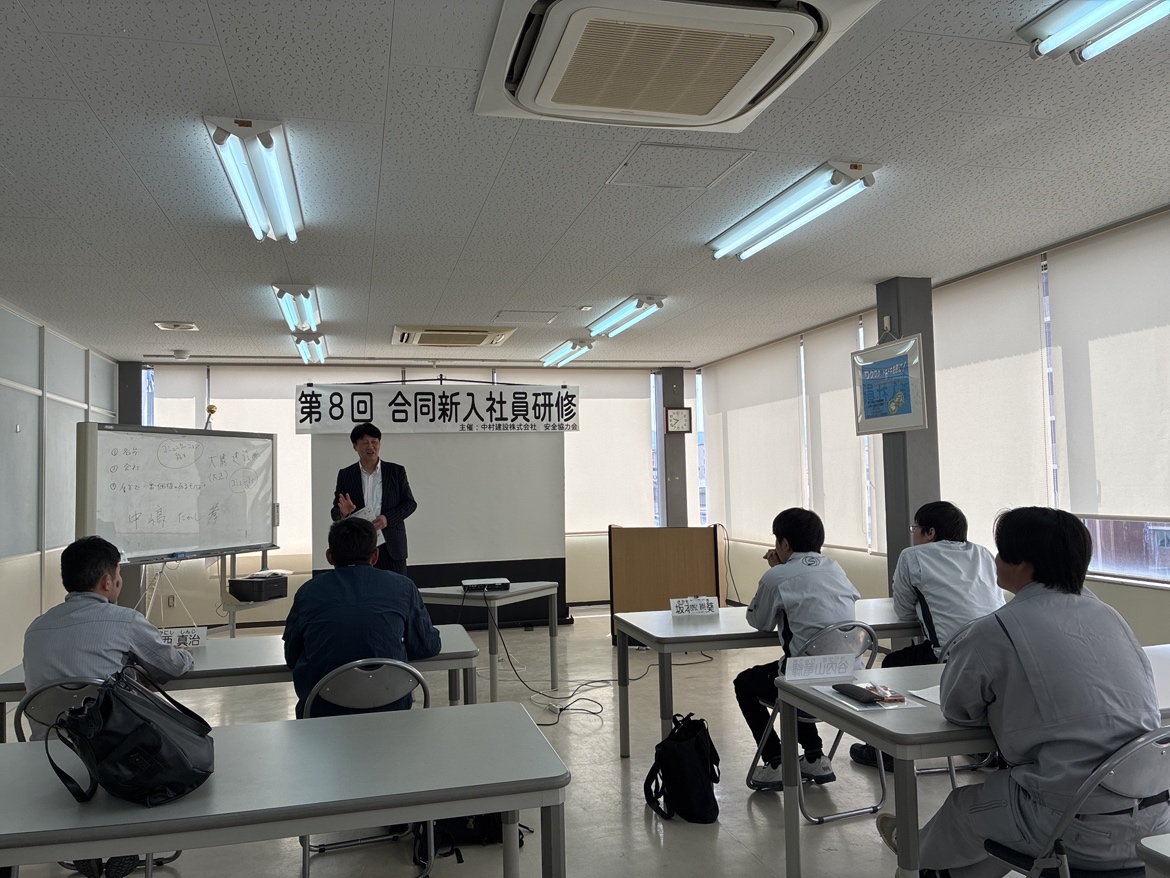 中村建設では、安全協力会のもと、合同新入社員研修を実施しています。2週間の研修では、資格取得や他業種理解など幅広い内容を学びますが、特に大切にしているのが「座学だけで終わらせない」こと。実際に手を動かし、体験しながら学ぶ時間も多く取り入れています。