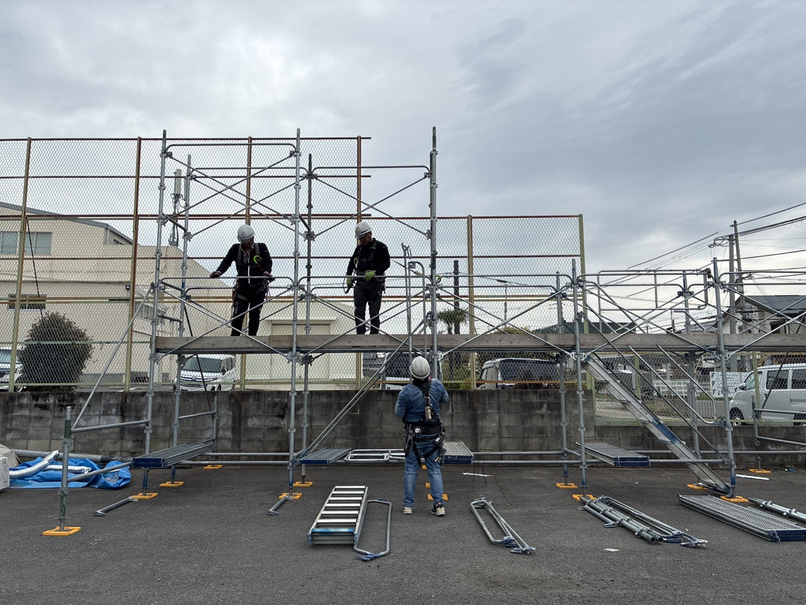 足場は、工事の最初に組まれ、最後まで現場で働く人の安全を支える重要な設備です。実際に組み立てを体験することで、足場の役割と安全の大切さをより実感できる研修となりました。