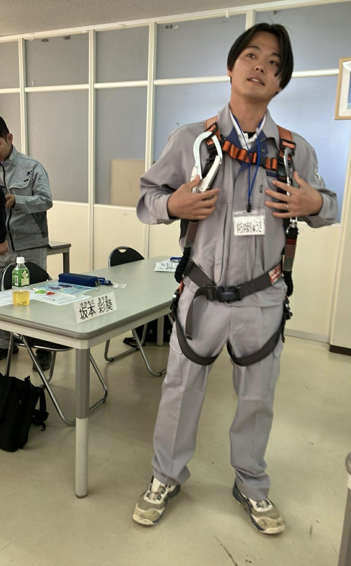午後は、現場で頻繁に使用する「フルハーネス型安全帯」の講習です。