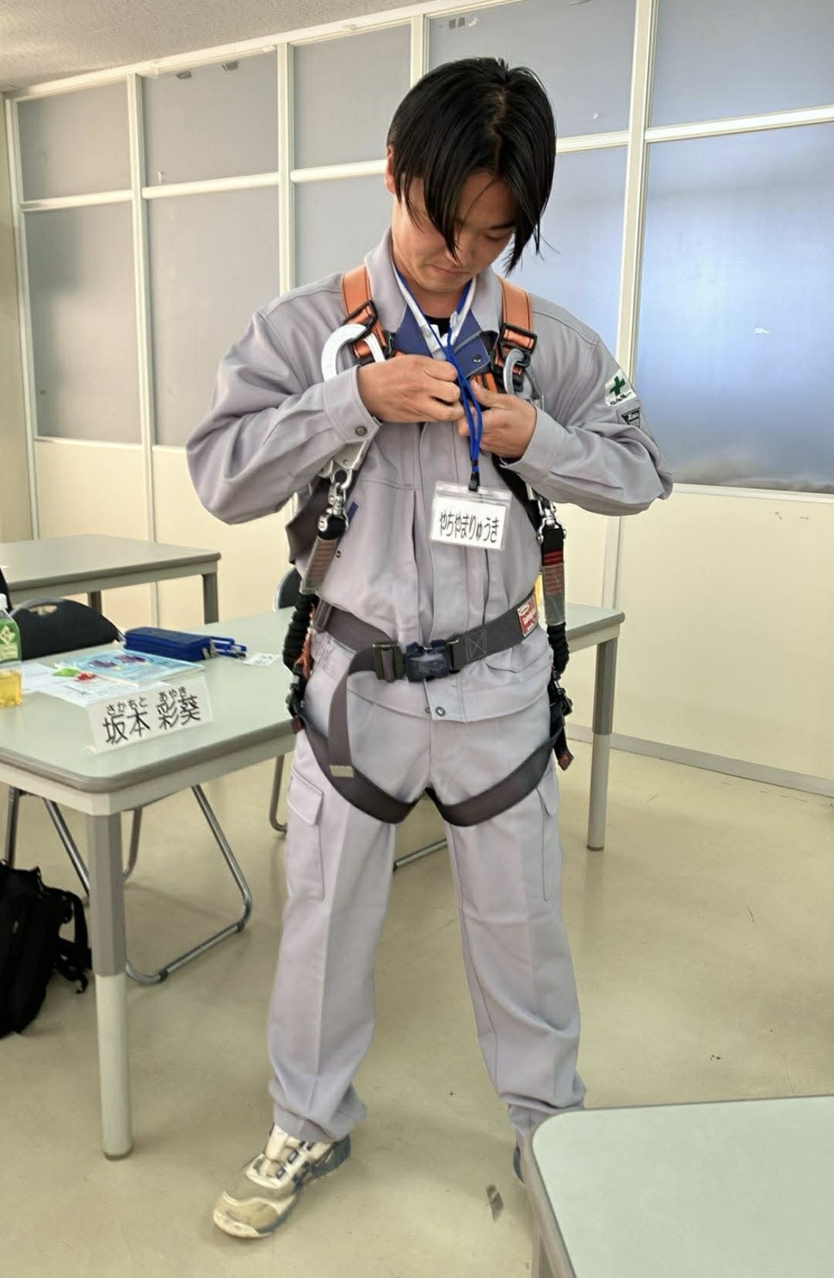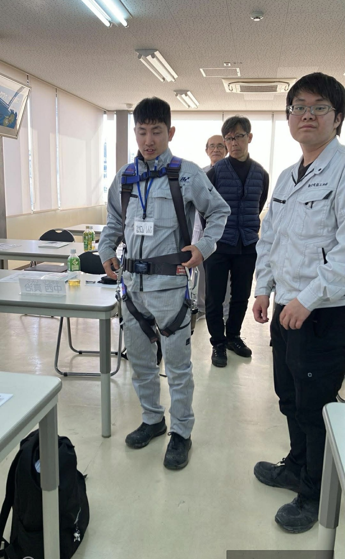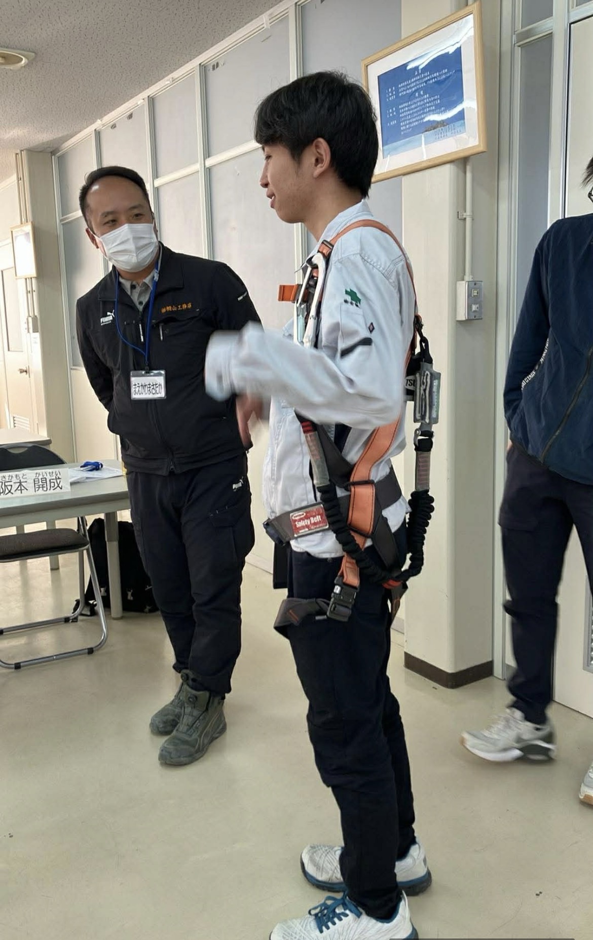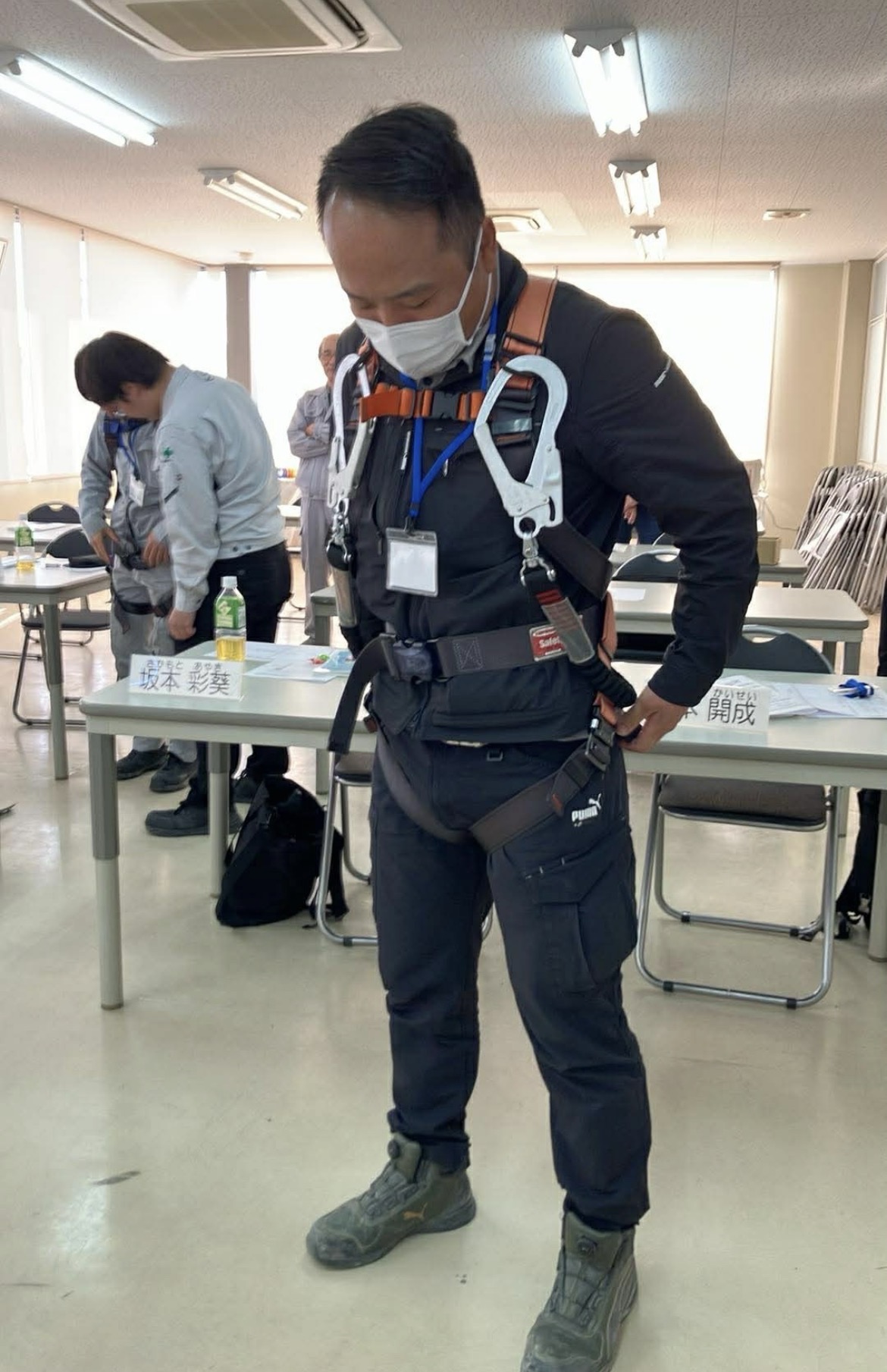 実際に装着しながら、正しい使い方や着用時の注意点を確認し、現場で命を守るための基本を身につけました。