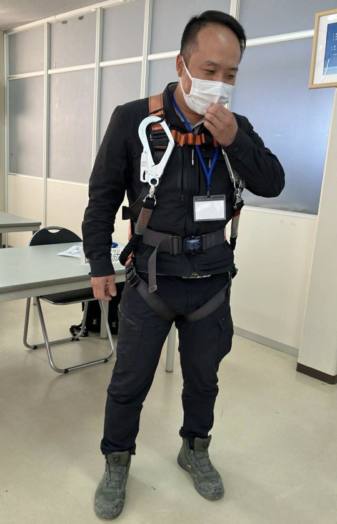 前日に学んだフルハーネスの知識を、さっそく実践で活かす機会となりました。