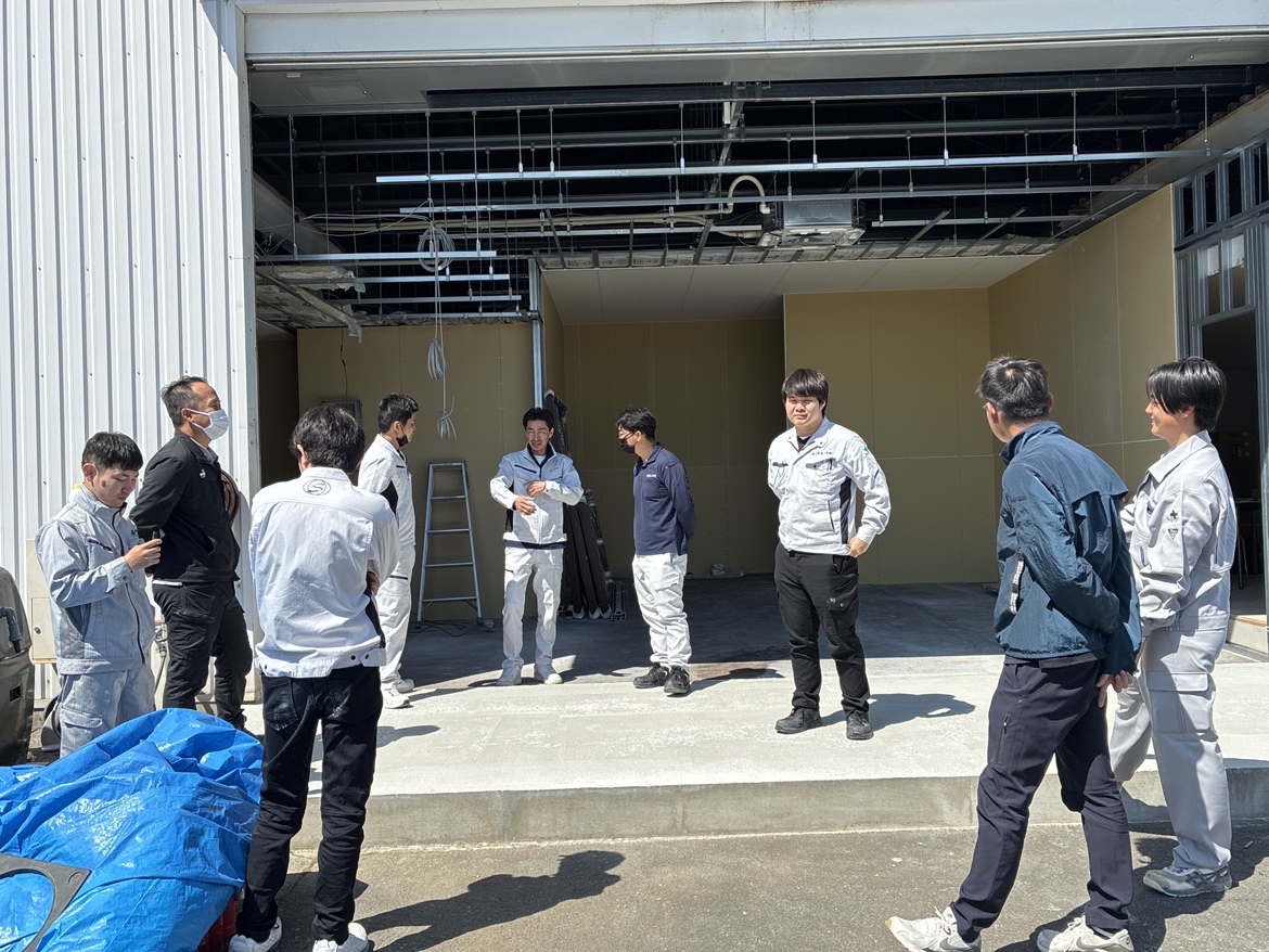 有限会社光の浅野社長にお越しいただき、施工実績や仕事の内容についてご紹介いただいたあと、実践形式の研修へ。