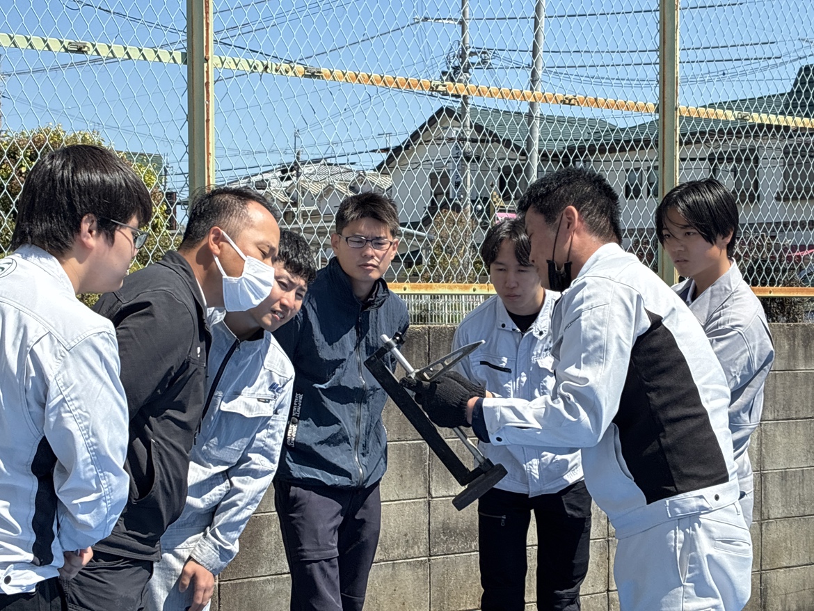 中村建設では、安全協力会のもと、合同新入社員研修を実施しています。2週間の研修では、資格取得や他業種理解など幅広い内容を学びますが、特に大切にしているのが「座学だけで終わらせない」こと。実際に手を動かし、体験しながら学ぶ時間も多く取り入れています。