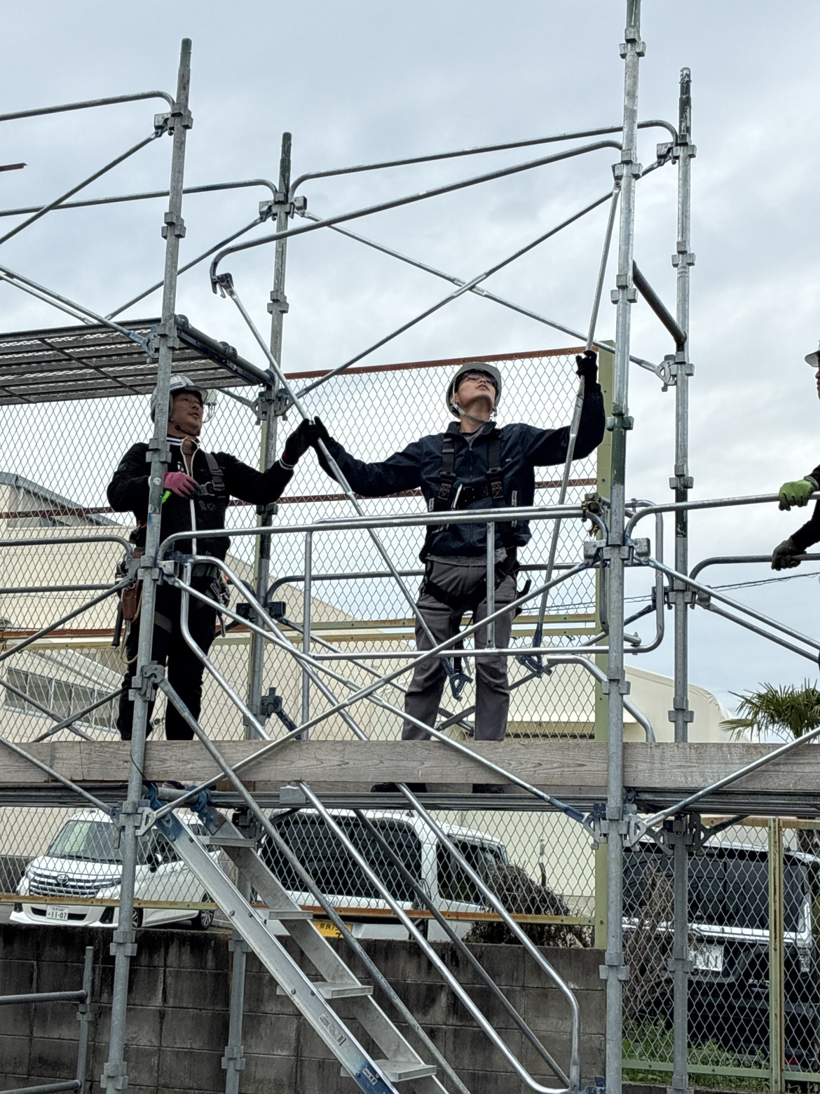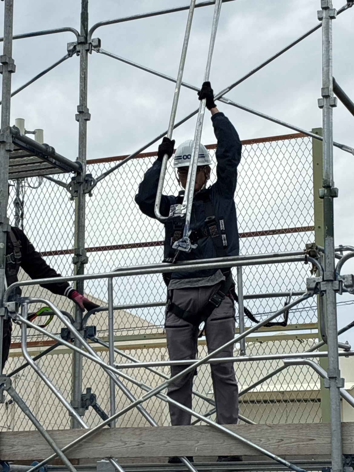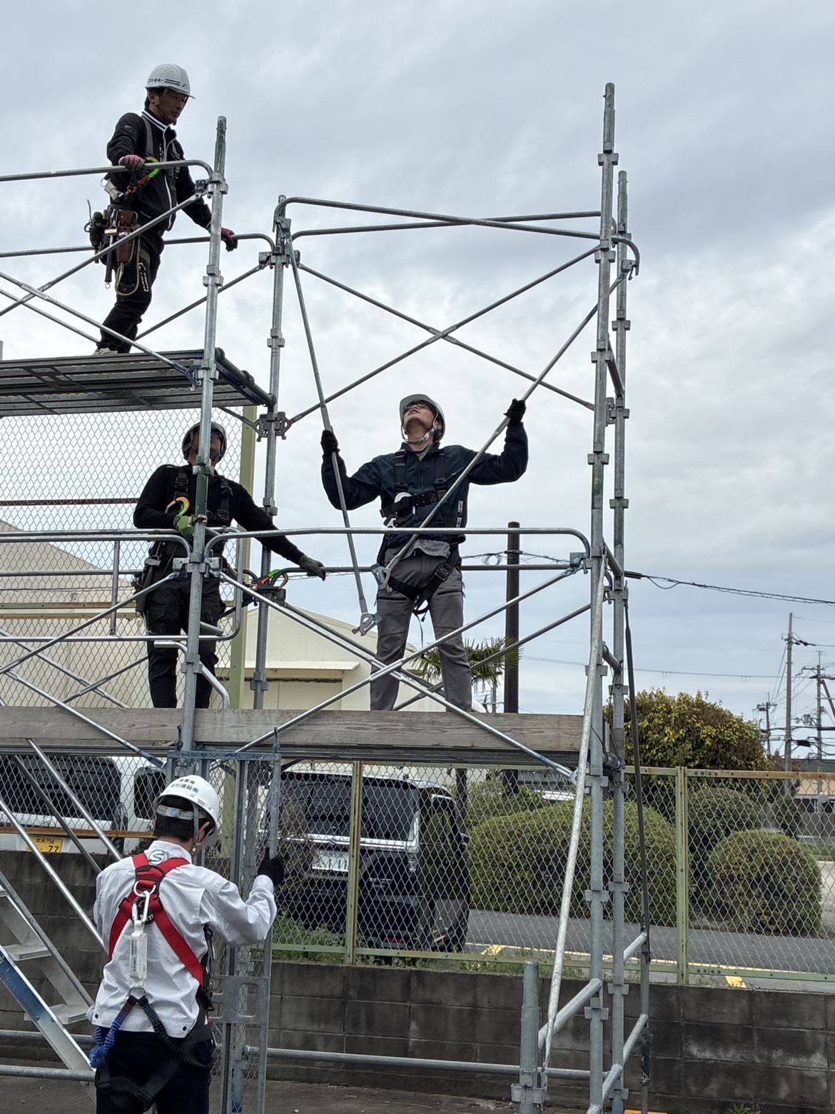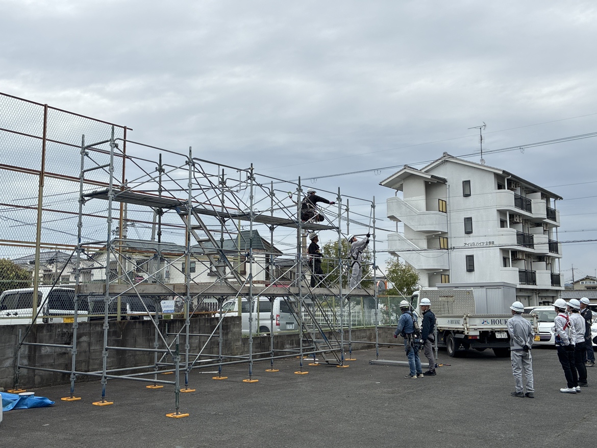 足場は、工事の最初に組まれ、最後まで現場で働く人の安全を支える重要な設備です。実際に組み立てを体験することで、足場の役割と安全の大切さをより実感できる研修となりました。